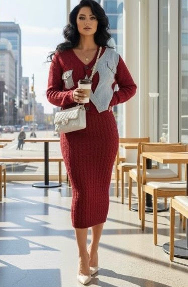 Denim Sweater Plus Size Skirt Set